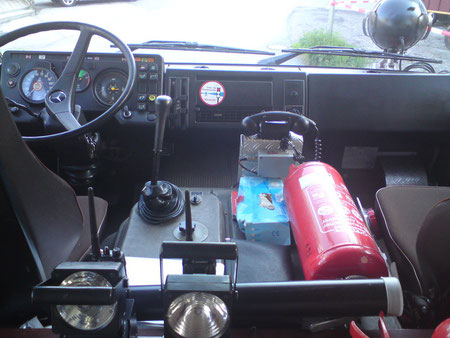 Verbandskasten, Krankenhausdecke, Warndreiecke, Handsprechfunkgeräte, Rettungsleinen, Feuerlöscher, Handlampen, Abschleppseile mit Schäkel, Bolzenschneider, Feuerwehrgurte, Rettungsgurt, Warnwesten, Warnleuchten